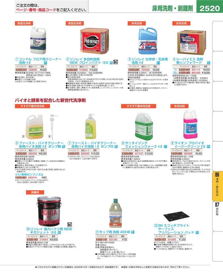 | e26-8363400 | ファースト・バイオクリーナー 床用バイオ洗剤 1L ポンプ付 | 上代 12,000円(税抜) 見積 | ||
