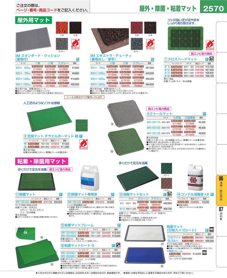 | e26-0099400 | 消毒マットセット #6 グリーン | 上代 29,900円(税抜) 見積 | ||