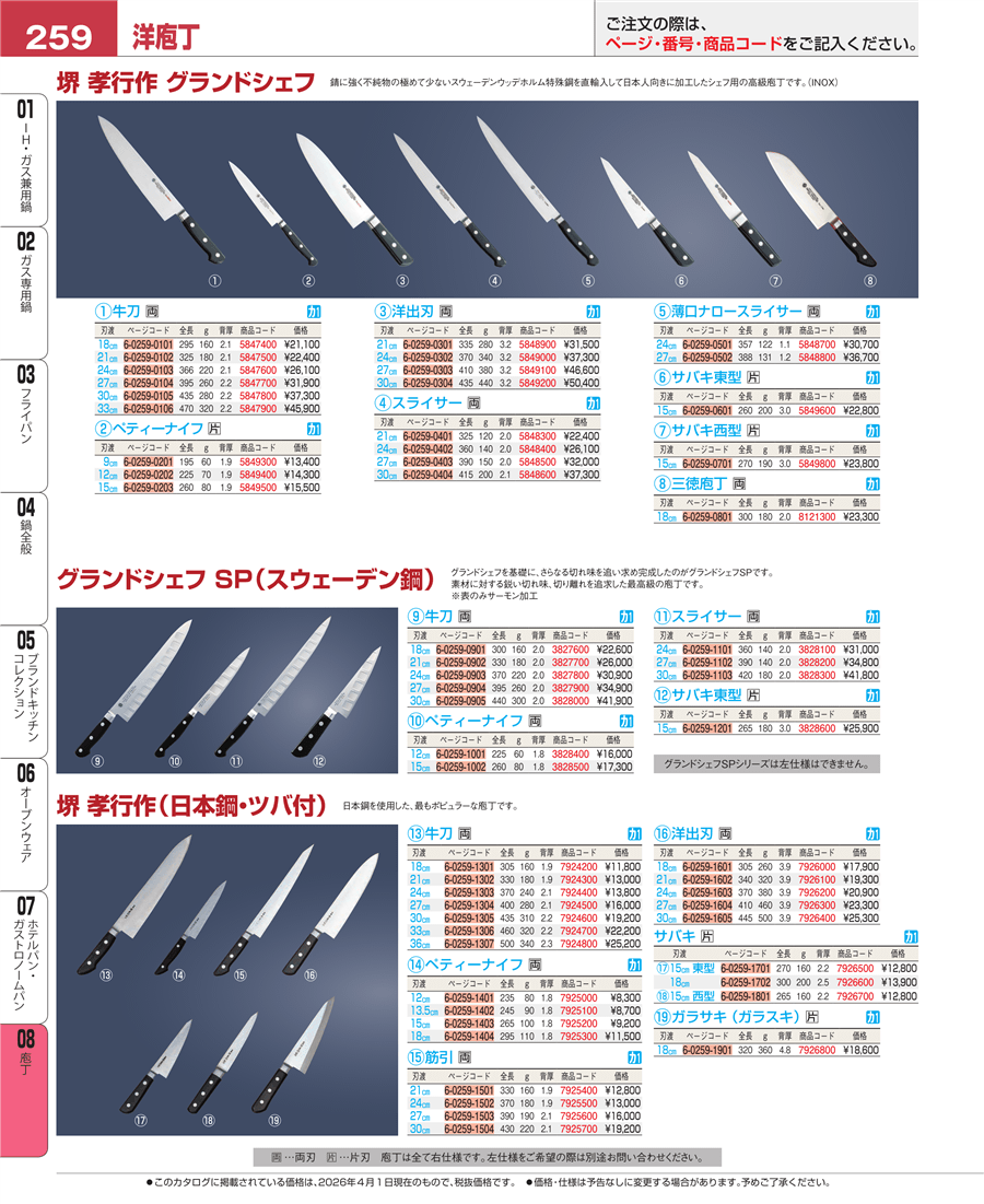 | e26-5849600 | 堺孝行 グランドシェフ サバキ 東型 15㎝ 10041 | 上代 22,800円(税抜) 見積 | ||