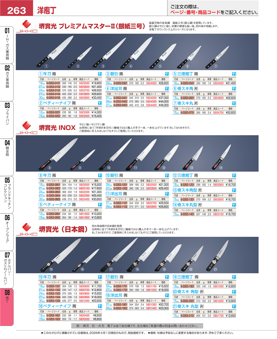 | e26-5802600 | 堺實光 INOX 筋引 27㎝ | 上代 25,400円(税抜) 見積 | ||