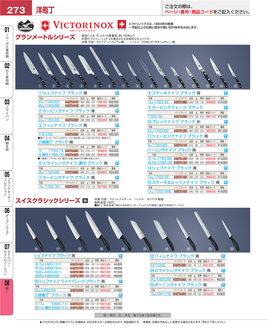 | e26-7807000 | ビクトリノックス グランメートル カービングナイフ15㎝ ブラック 7.7203.15G | 上代 17,000円(税抜) 見積