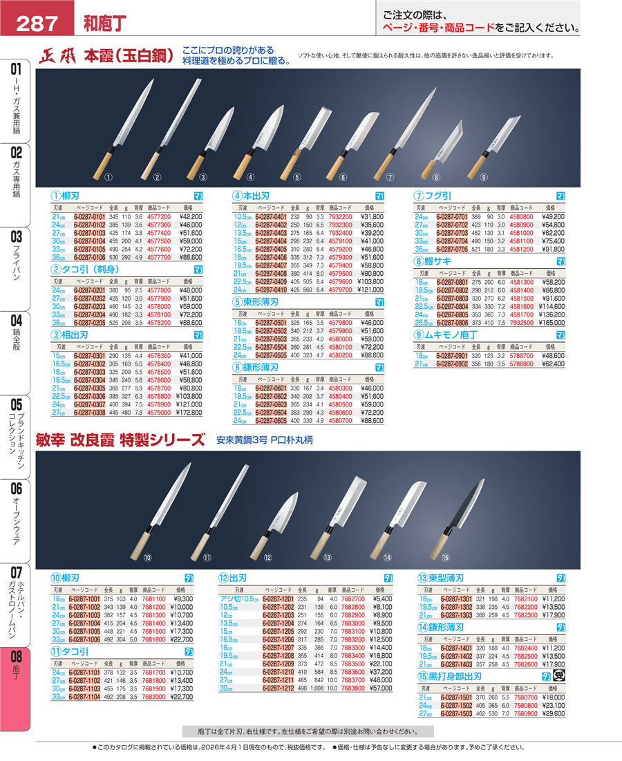 e26-4580400正本 本霞(玉白鋼)鎌形薄刃 19.5㎝ KS0719上代 51,600円(税抜)