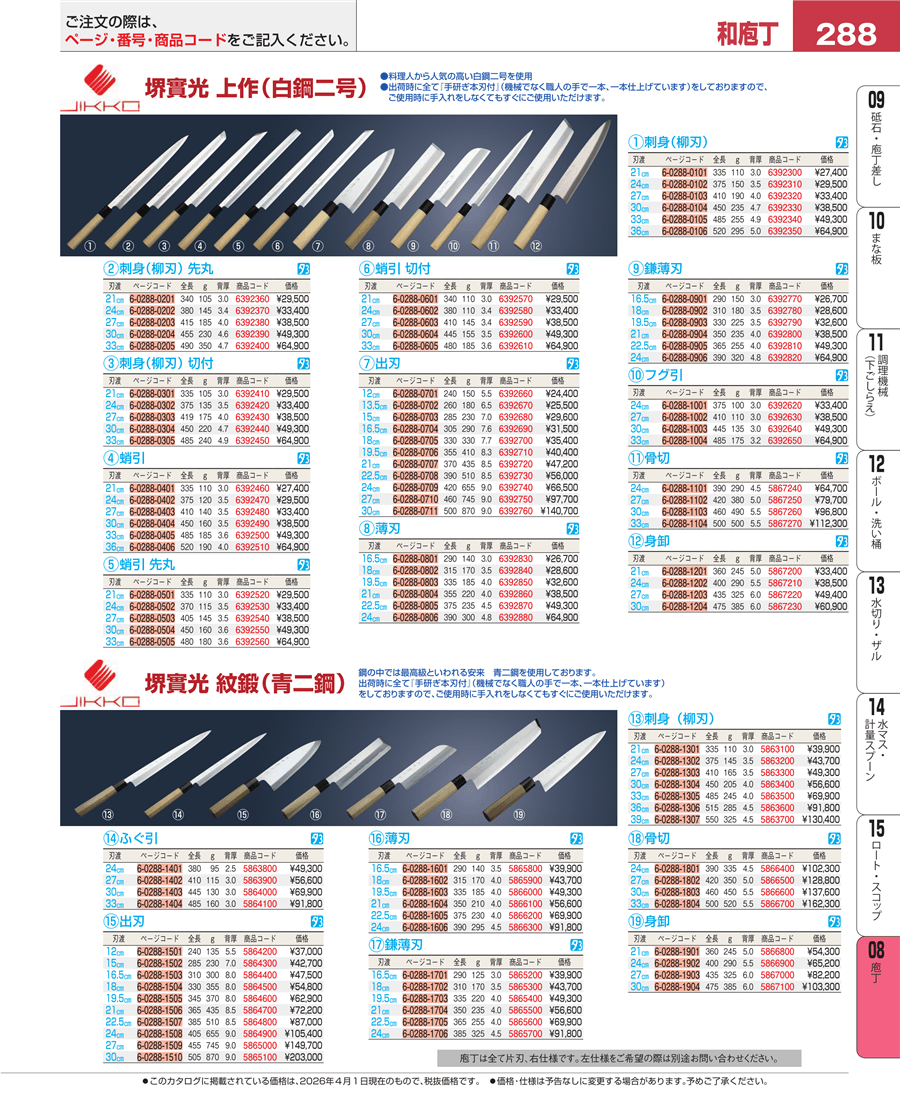 | e26-5867100 | 堺實光 紋鍛(青二鋼)身卸 30㎝ | 上代 103,300円(税抜) 見積 | ||