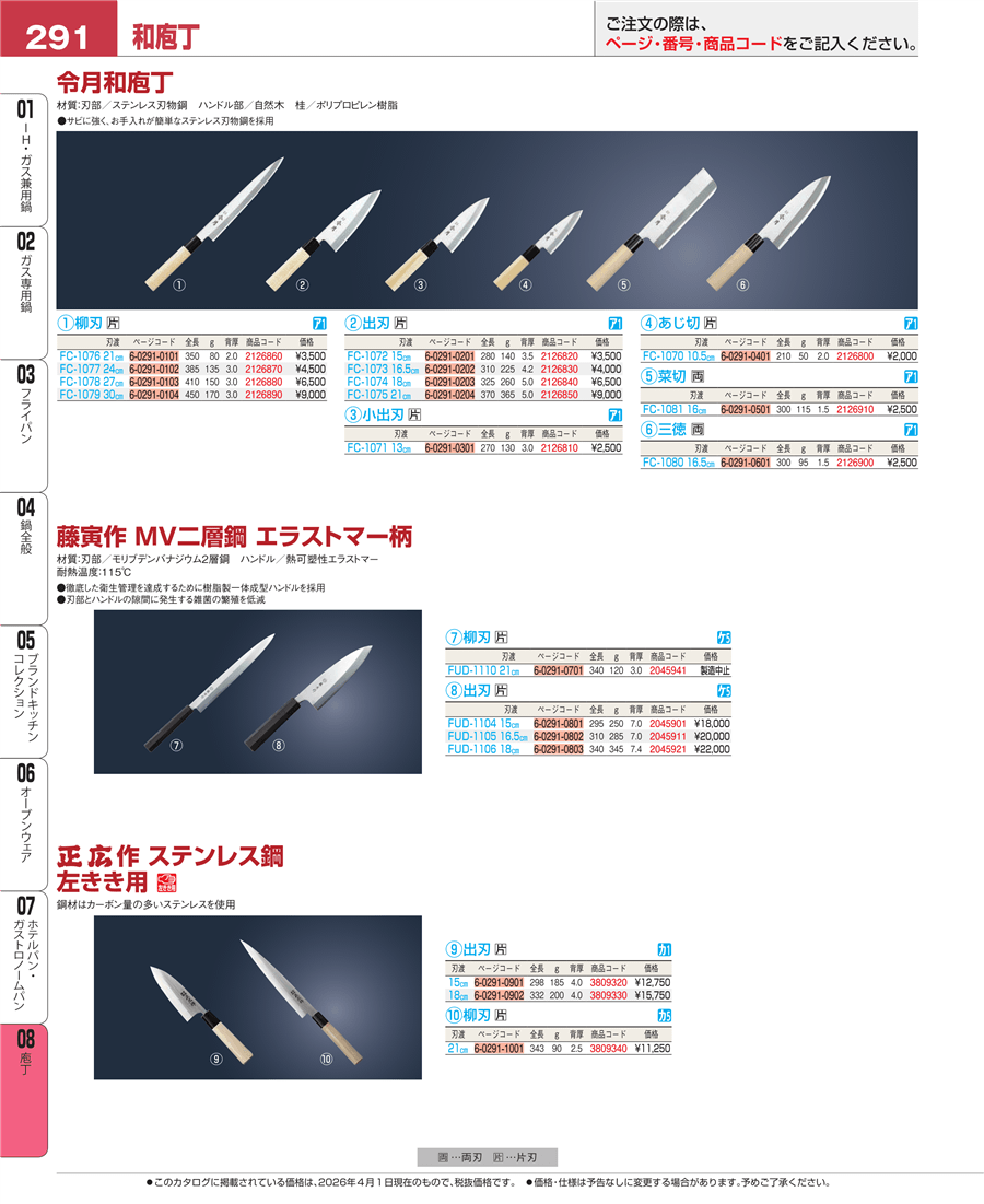 | e26-3809330-291 | 正広作 ステンレス鋼 左きき用 出刃庖丁 18㎝ MS-8 | 上代 15,750円(税抜) 見積 | ||