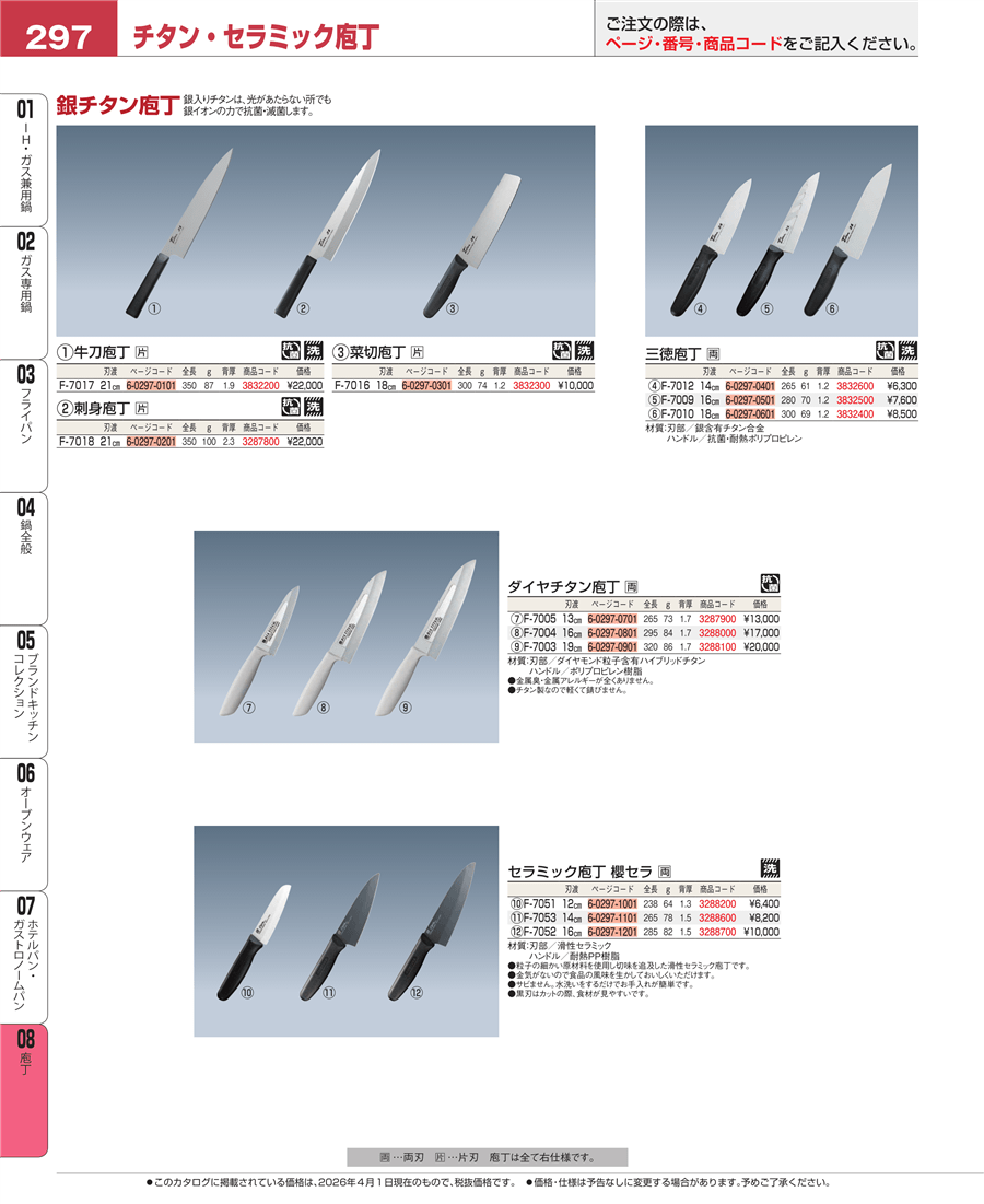 e26-3288100ダイヤチタン 庖丁 F-7003(TW-19H)19㎝上代 20,000円(税抜)