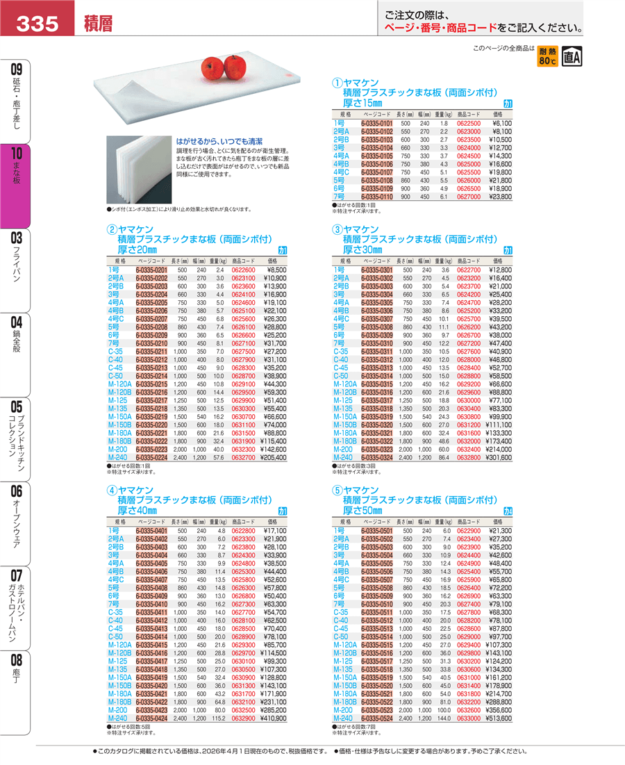 | e26-0625800 | ヤマケン 積層プラスチックまな板 4号C 750×450×40 | 上代 52,600円(税抜) 見積