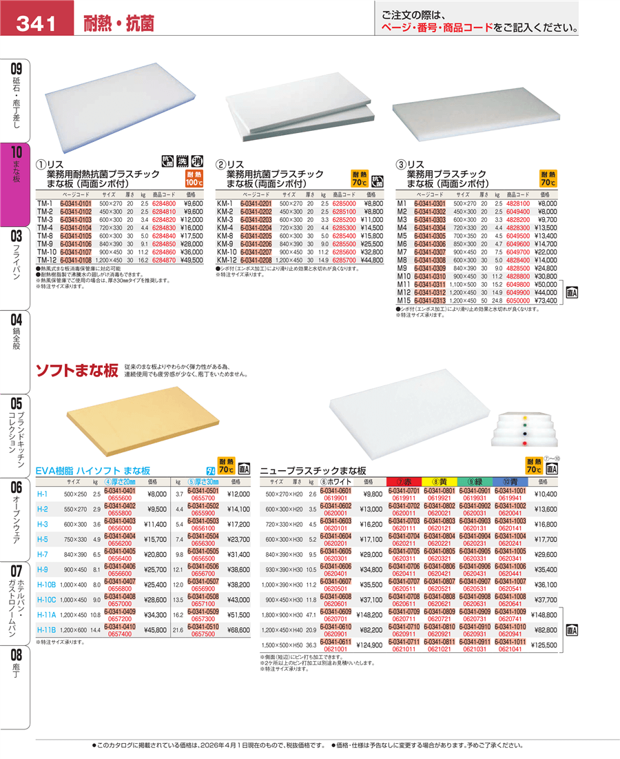 | e26-6284860 | リス 耐熱抗菌まな板 TM-10 900×450×30 | 上代 36,000円(税抜) 見積