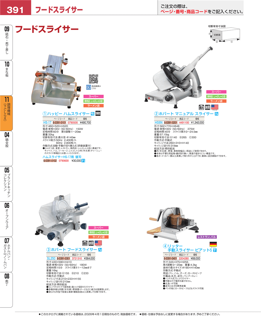 | e26-4491100 | ホバート マニュアル スライサー HS6N | 上代 1,342,000円(税抜) 見積 | ||