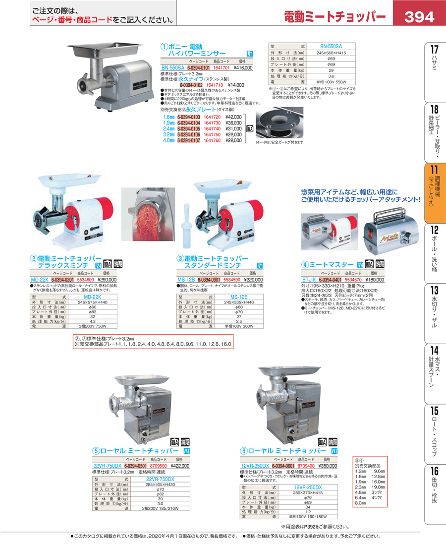 | e26-1641701 | ボニー 電動式ハイパワーミンサー BN-550SA | 上代 416,000円(税抜) 見積 | ||
