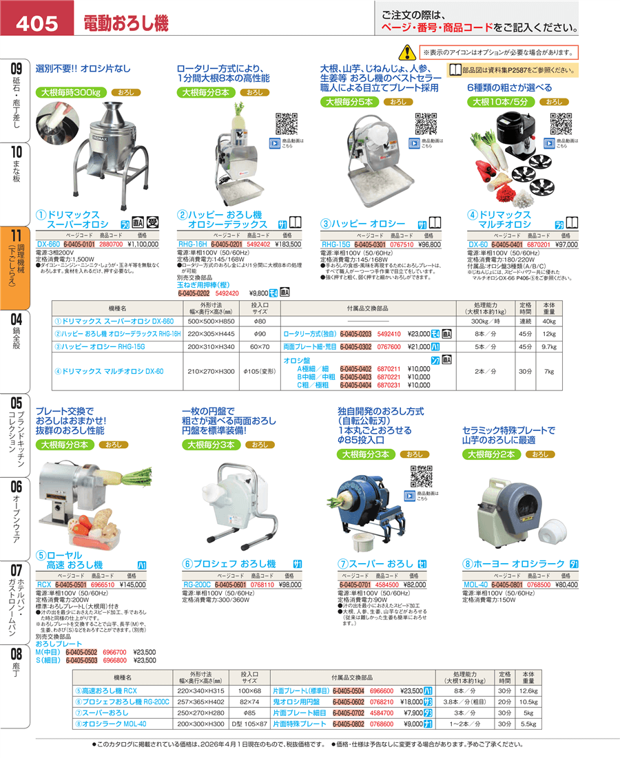 | e26-6870201 | ドリマックス おろし機 マルチオロシ DX-60 | 上代 97,000円(税抜) 見積 | ||