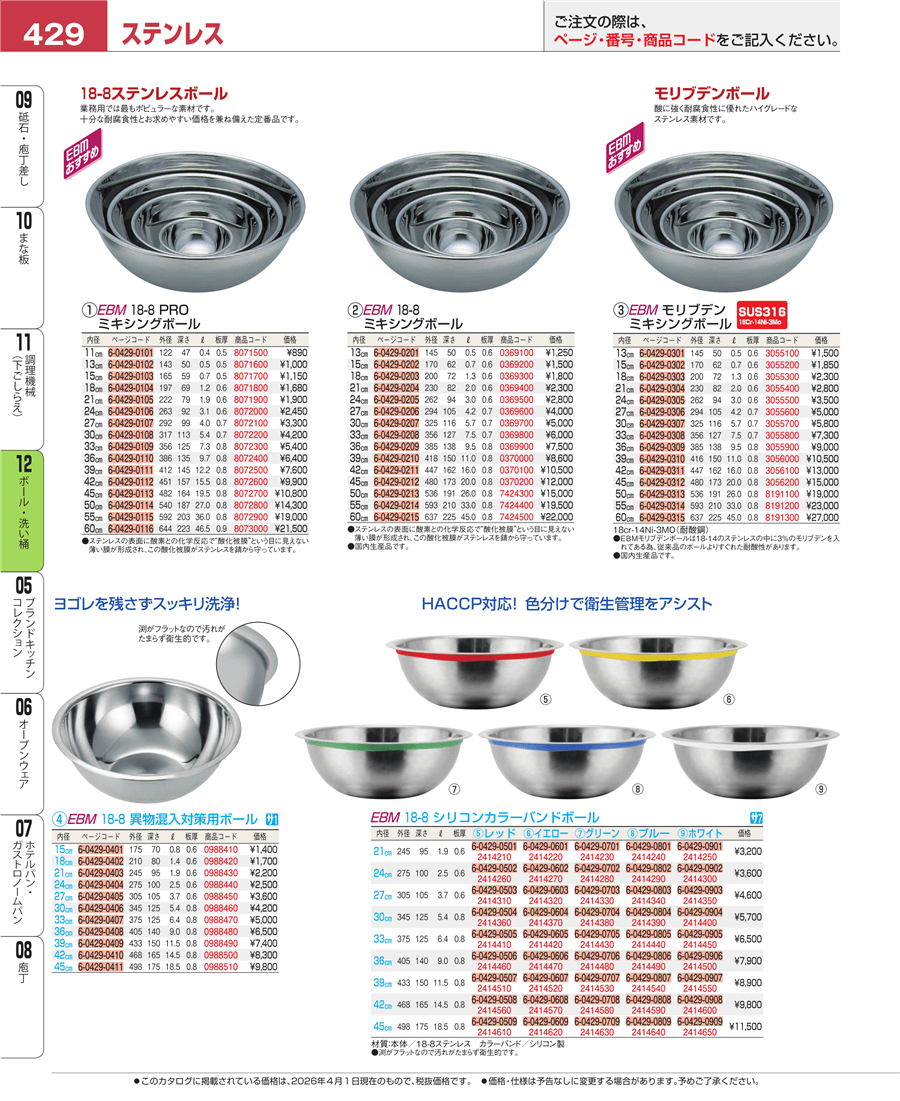 | e26-8073000 | EBM 18-8 PRO ミキシングボール 60㎝ | 上代 21,500円(税抜) 見積 | ||