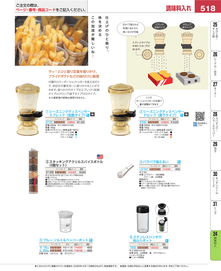 | e26-1568840 | シーズニングディスペンサー スプレッド 87100 | 上代 21,000円(税抜) 見積 | ||