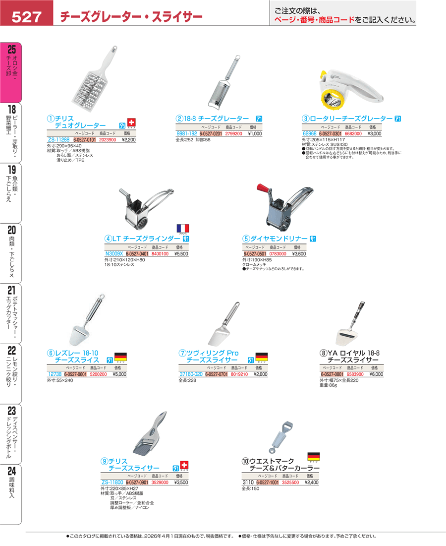 | e26-6583900 | YA 18-8 ロイヤル チーズスライサー | 上代 6,000円(税抜) 見積 | ||