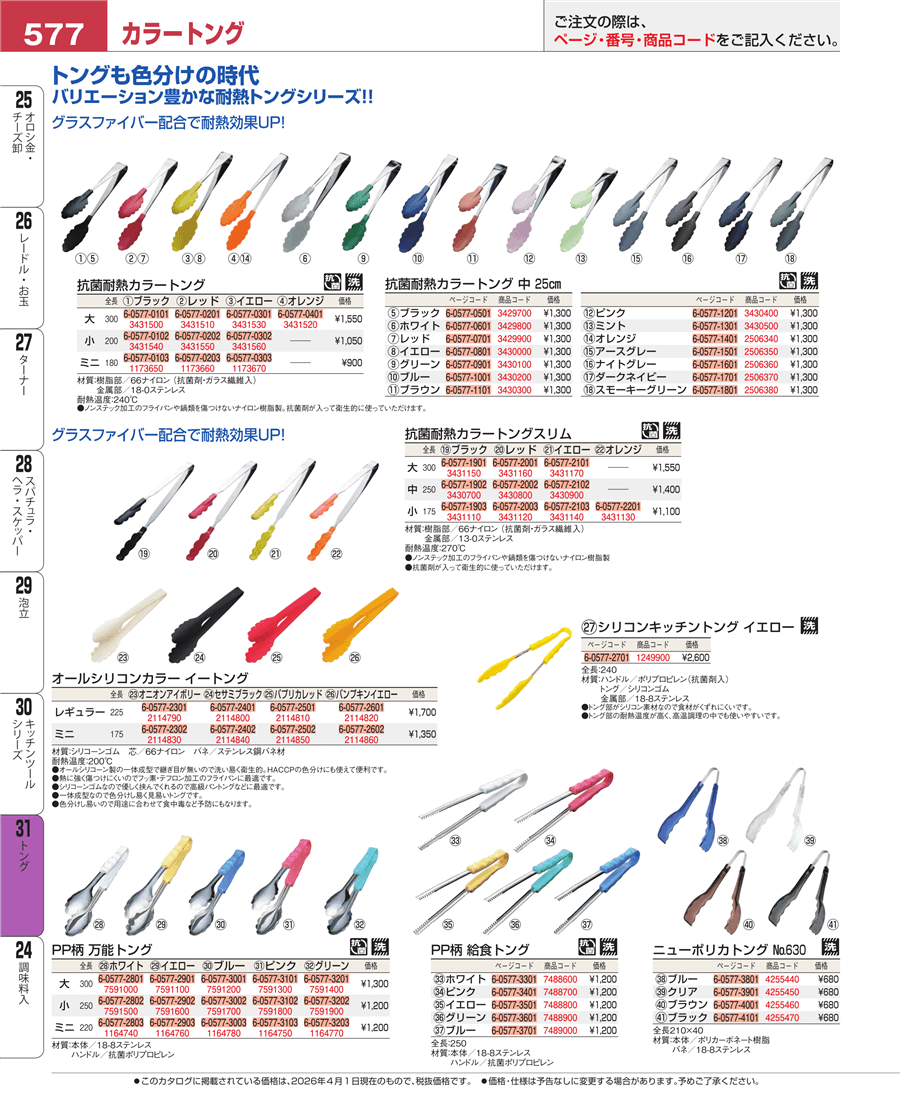 | e26-3430900 | 抗菌耐熱カラートング スリム 中 イエロー 25㎝ | 上代 1,400円(税抜) 見積 | ||