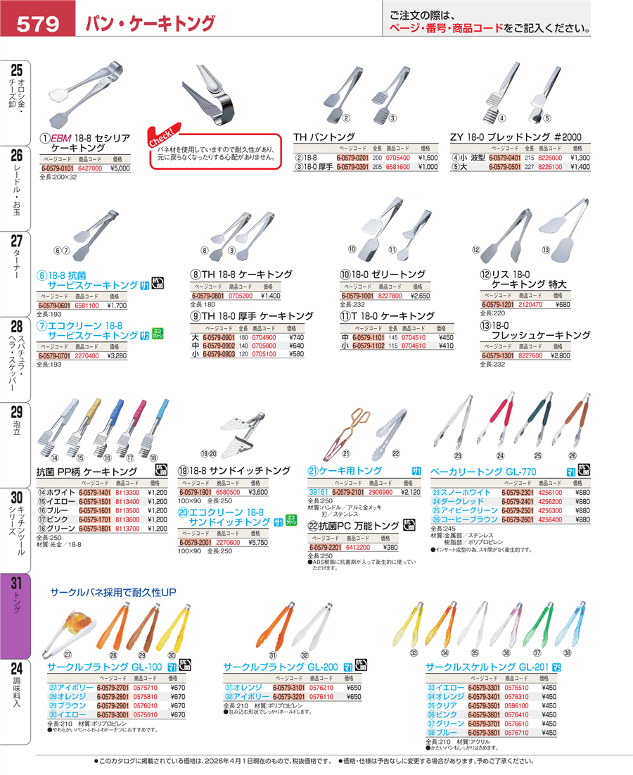 e26-658050018-8 サンドイッチトング上代 3,600円(税抜)