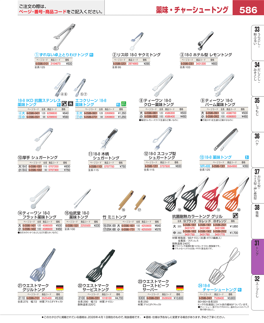 | e26-3564900 | 18-8 薬味トング MR-499 | 上代 350円(税抜) 見積 | ||