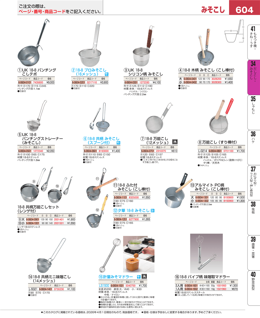 | e26-2001401 | 18-8 共柄 万能こしセット(18-0ステンレスレンゲ付)大 | 上代 1,900円(税抜) 見積 | ||