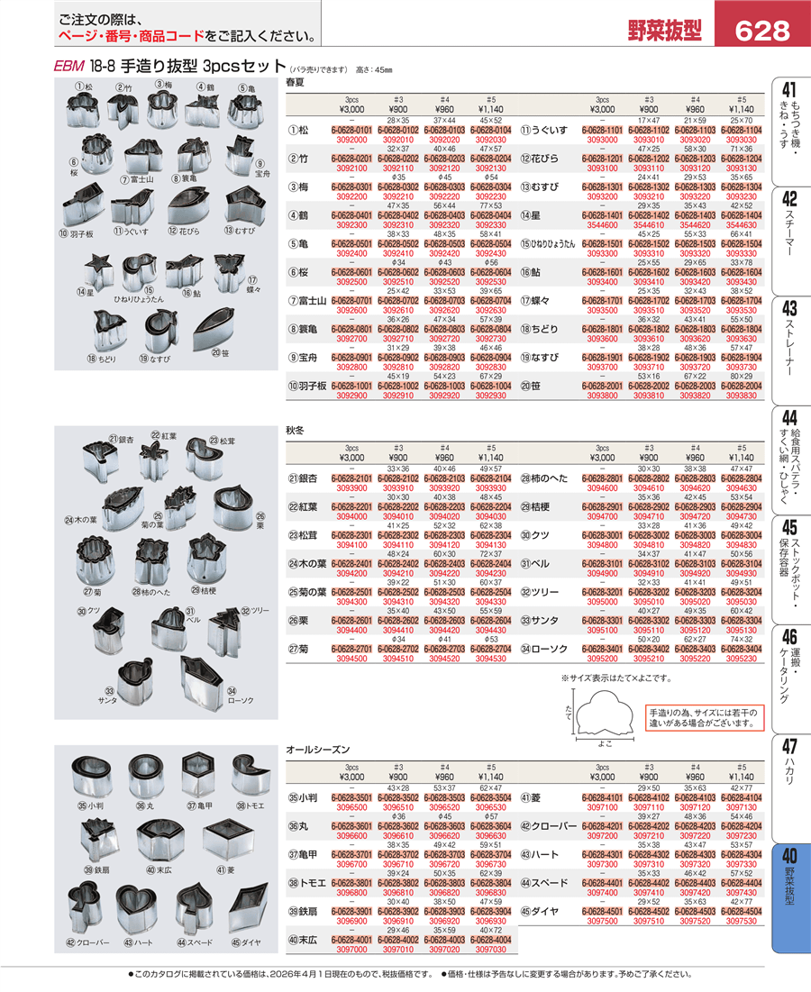 | e26-3092000 | EBM 18-8 手造抜型 3Pcs 春 松 | 上代 3,000円(税抜) 見積 | ||