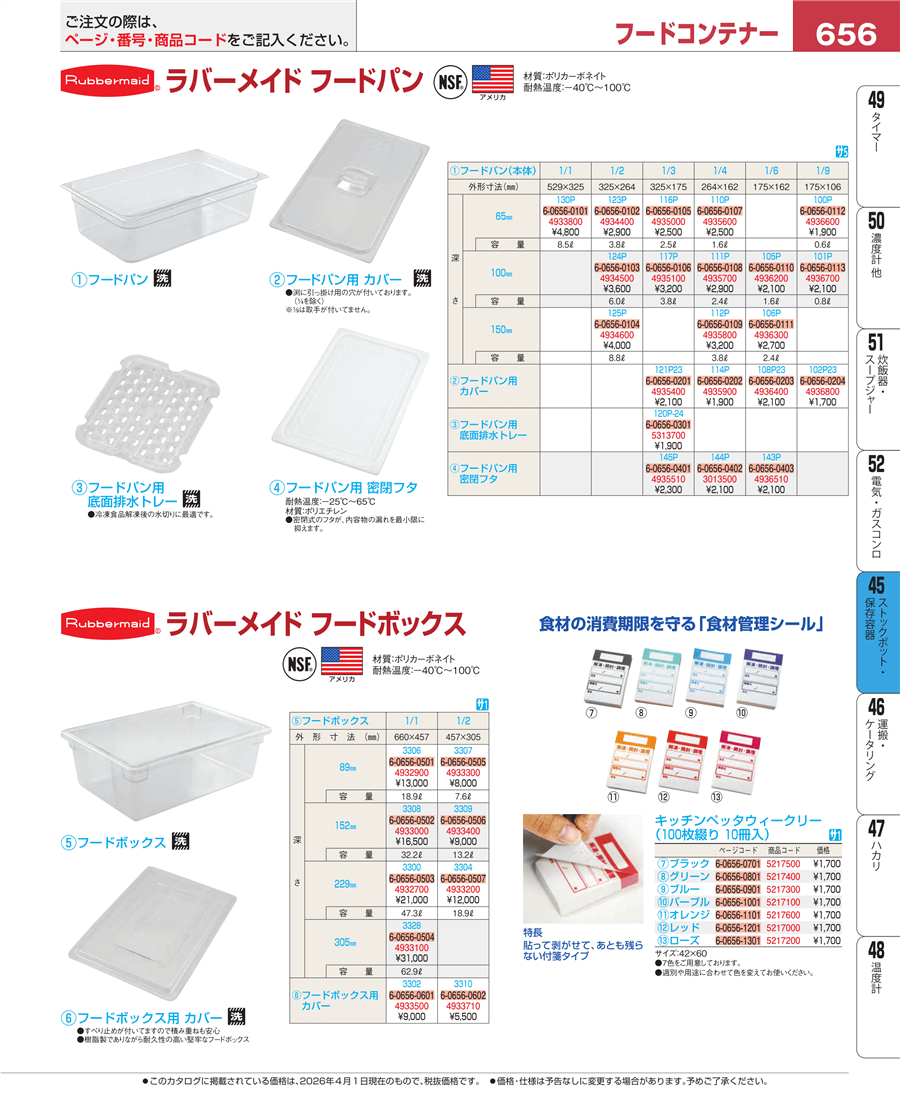 e26-4936510ラバーメイド エクストラフードパン 1/6用密閉蓋 143P上代 2,100円(税抜)