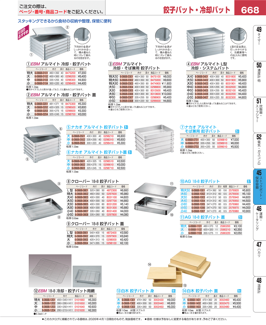 | e26-2576920 | AG 18-8 餃子バット 特大50 | 上代 5,800円(税抜) 見積 | ||