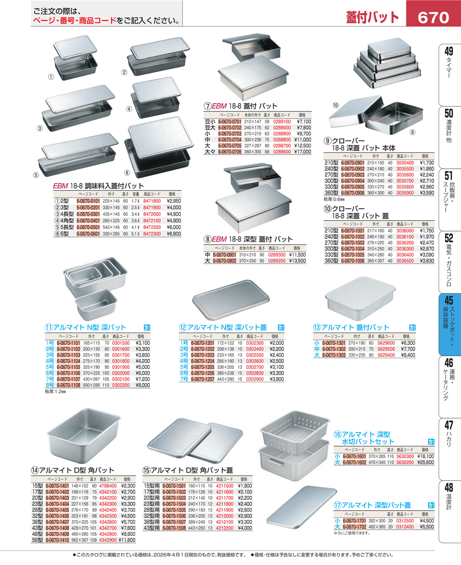 | e26-0289200 | EBM 18-8 深型 蓋付バット 大 | 上代 13,500円(税抜) 見積 | ||