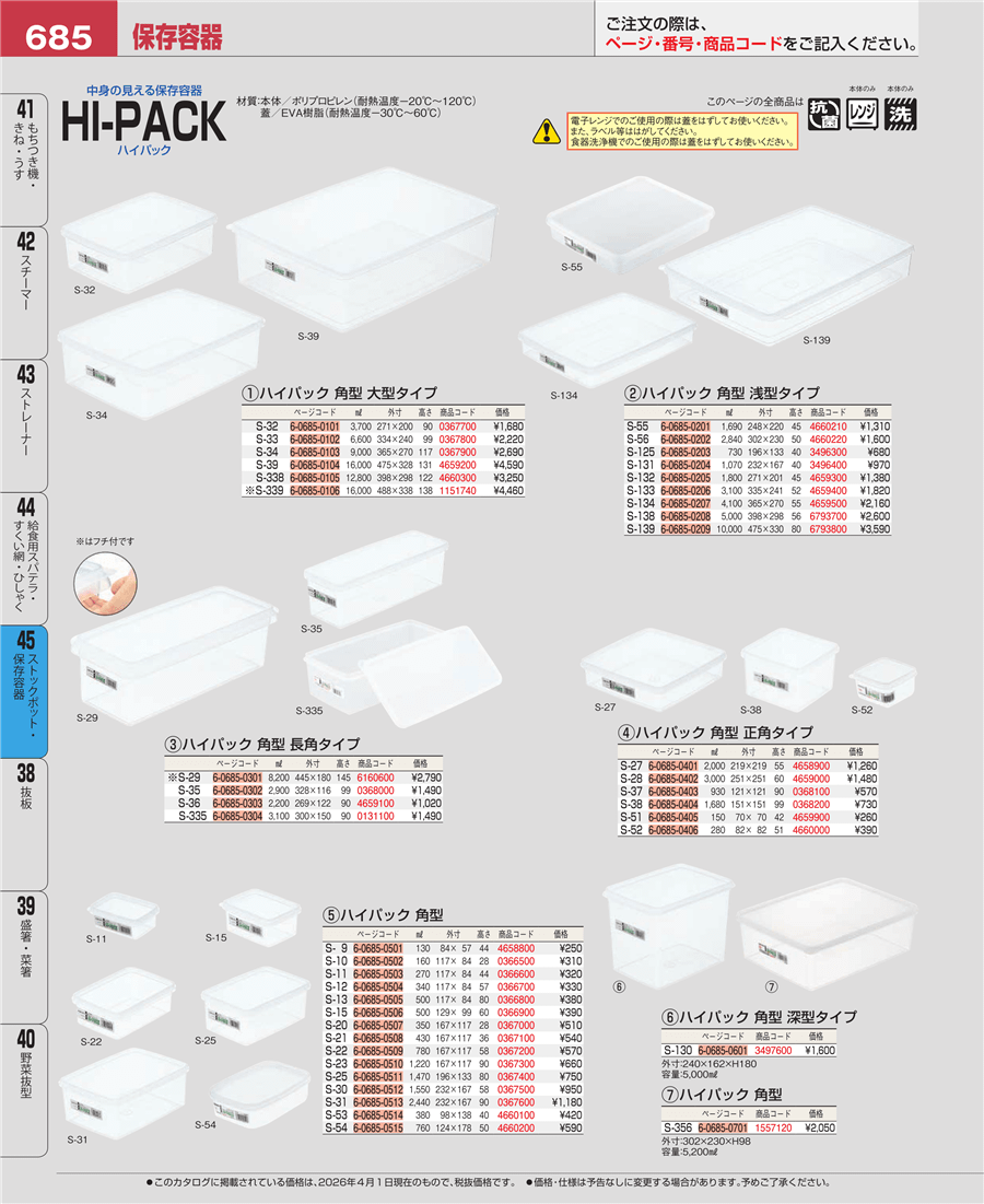 e26-4659500ハイパック 角型 浅型タイプ S-134上代 2,160円(税抜)