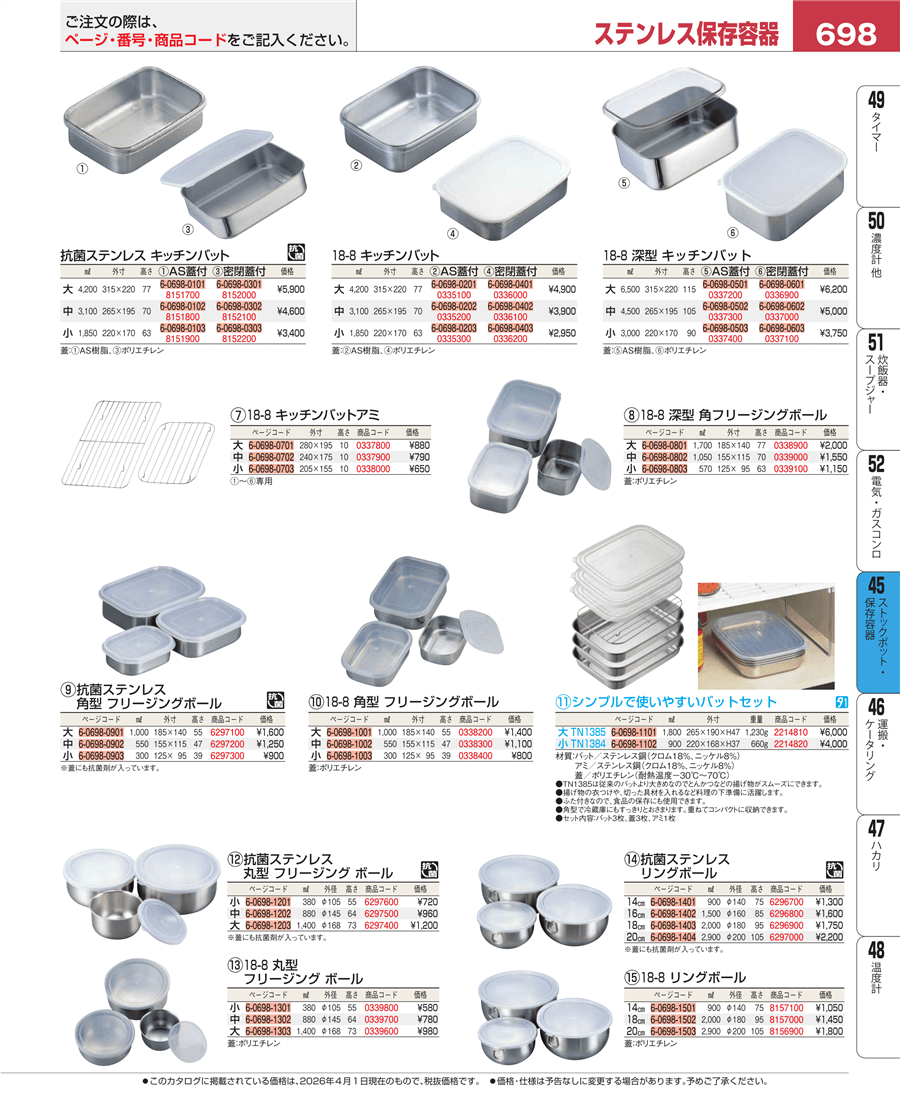 698ページ目-業務用食器カタログ「EBM業務用厨房用品カタログvol.26」