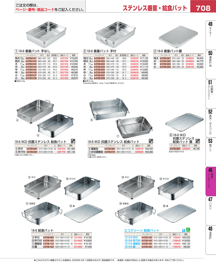 | e26-3038800 | CL 18-8 番重バット蓋 特大 | 上代 6,430円(税抜) 見積 | ||
