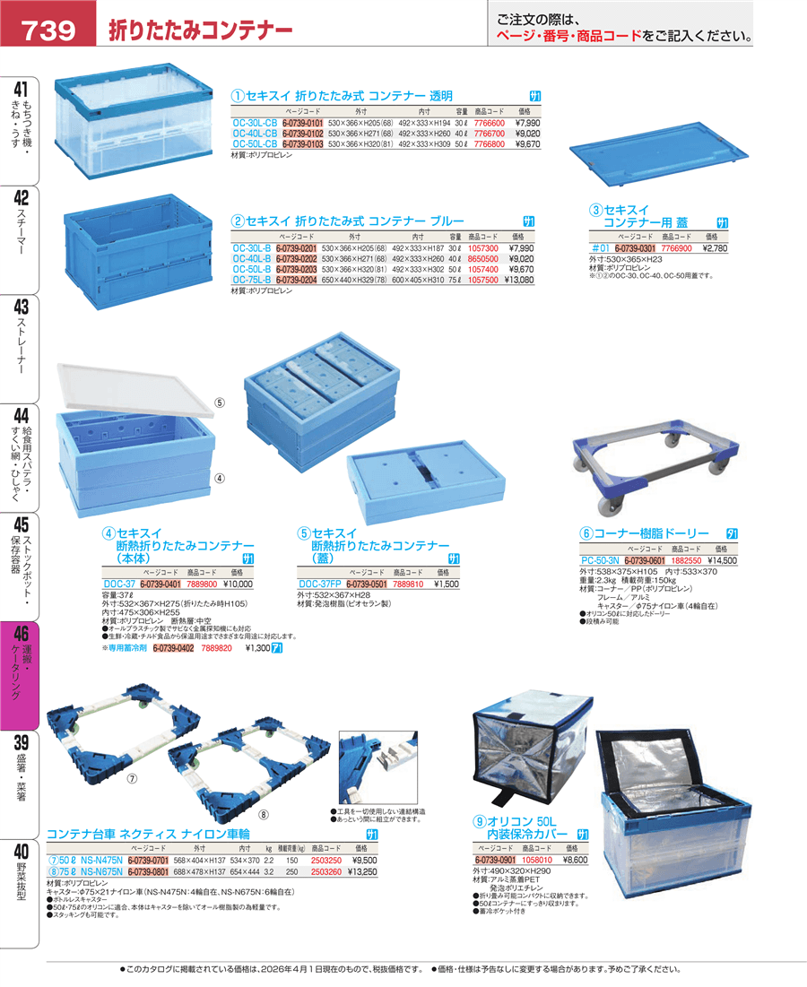 e26-7766700セキスイ 折りたたみ式 コンテナー 透明 OC-40L-CB上代 9,020円(税抜)