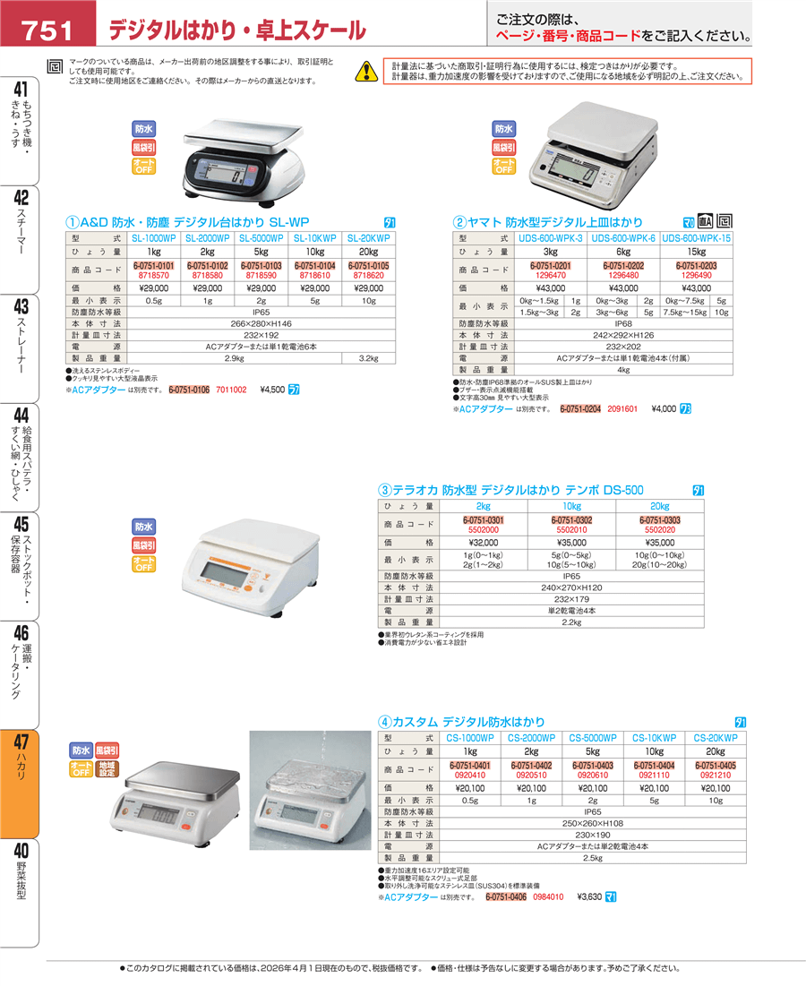 | e26-1296480 | ヤマト防水型デジタル上皿はかり 検定付 UDS-600-WPK-6㎏(県仕様) | 上代 43,000円(税抜) 見積 | ||