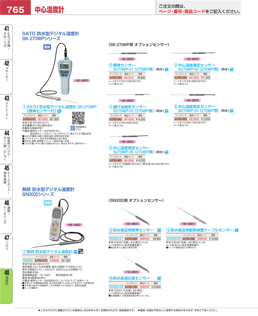 | e26-3099500 | 熱研 防水食品用チルドセンサー SN3000-6 | 上代 11,000円(税抜) 見積 | ||