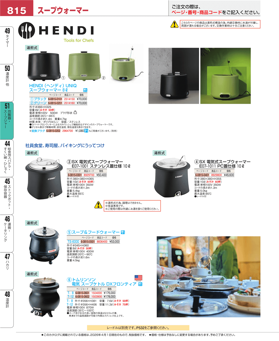 | e26-8836400 | スープ&フードウォーマー TS-6000 | 上代 53,000円(税抜) 見積 | ||