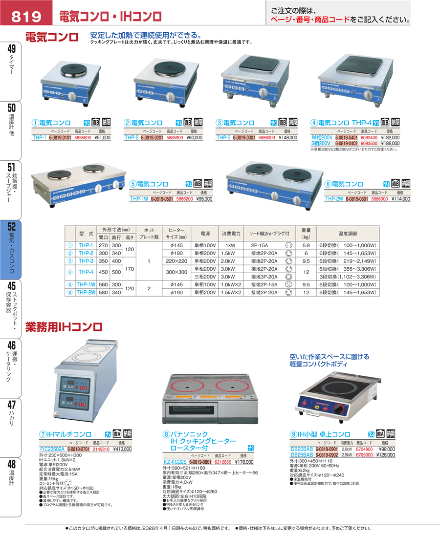 e26-5885800電気コンロ THP-1上代 51,000円(税抜)