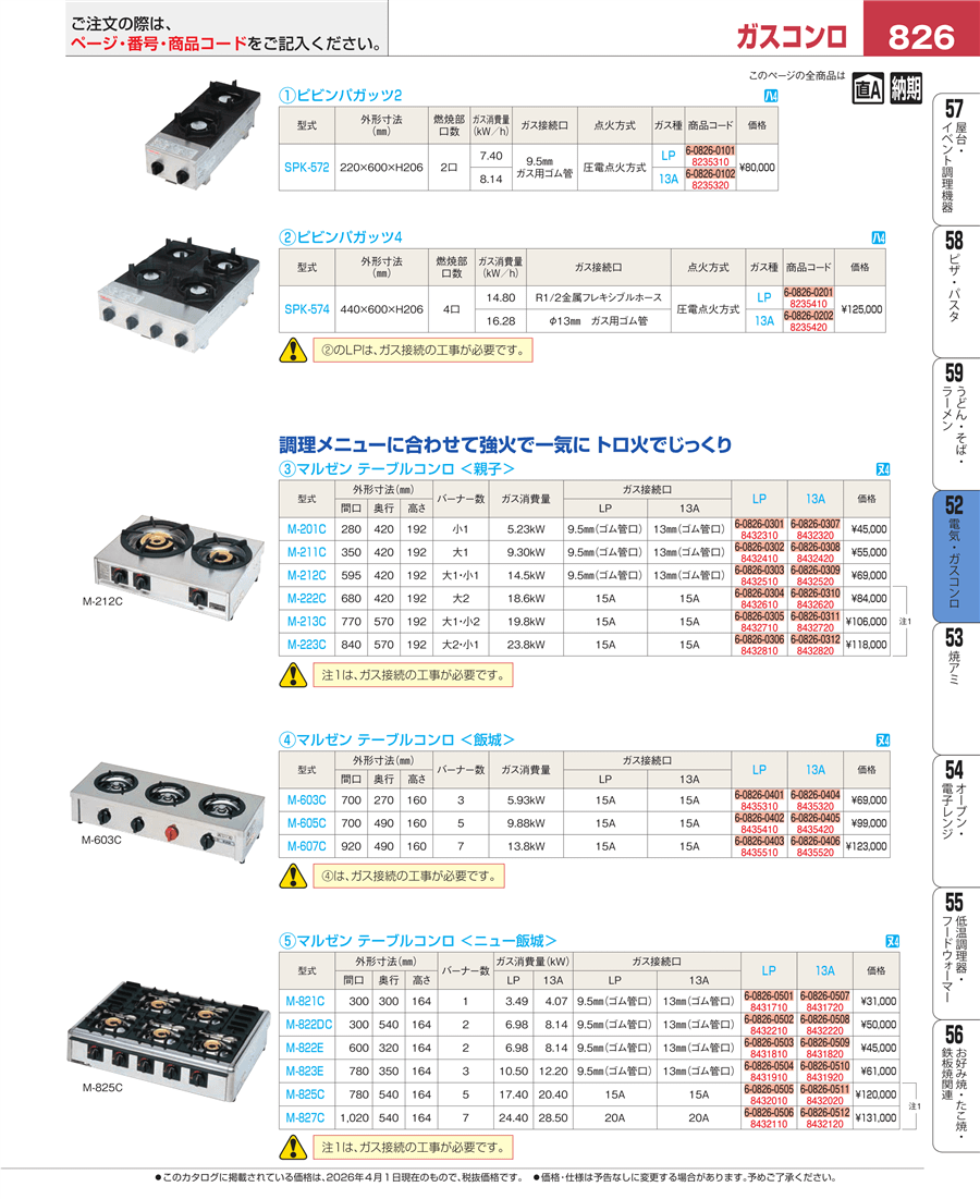 | e26-8435410 | マルゼン ガステーブルコンロ<飯城>M-605C LP | 上代 99,000円(税抜) 見積 | ||