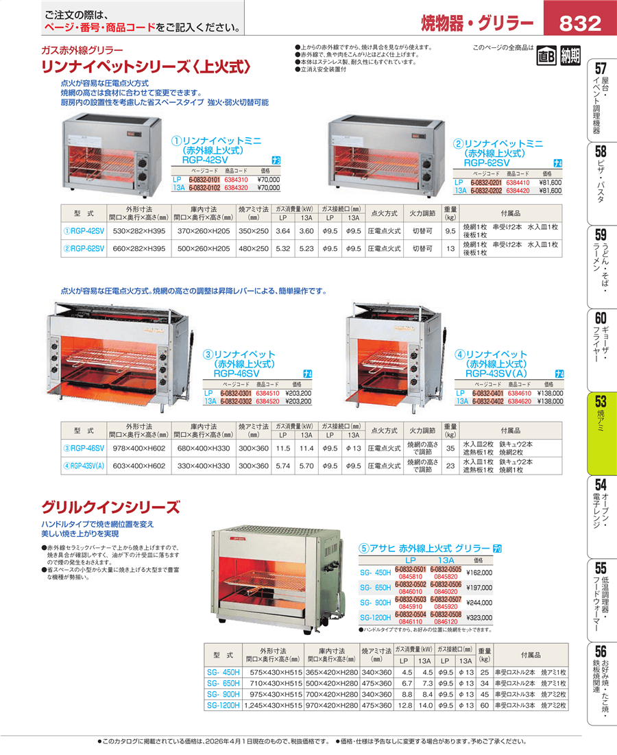 e26-0845810アサヒ 赤外線上火式グリルクイン グリラー SG-450H LP上代 162,000円(税抜)