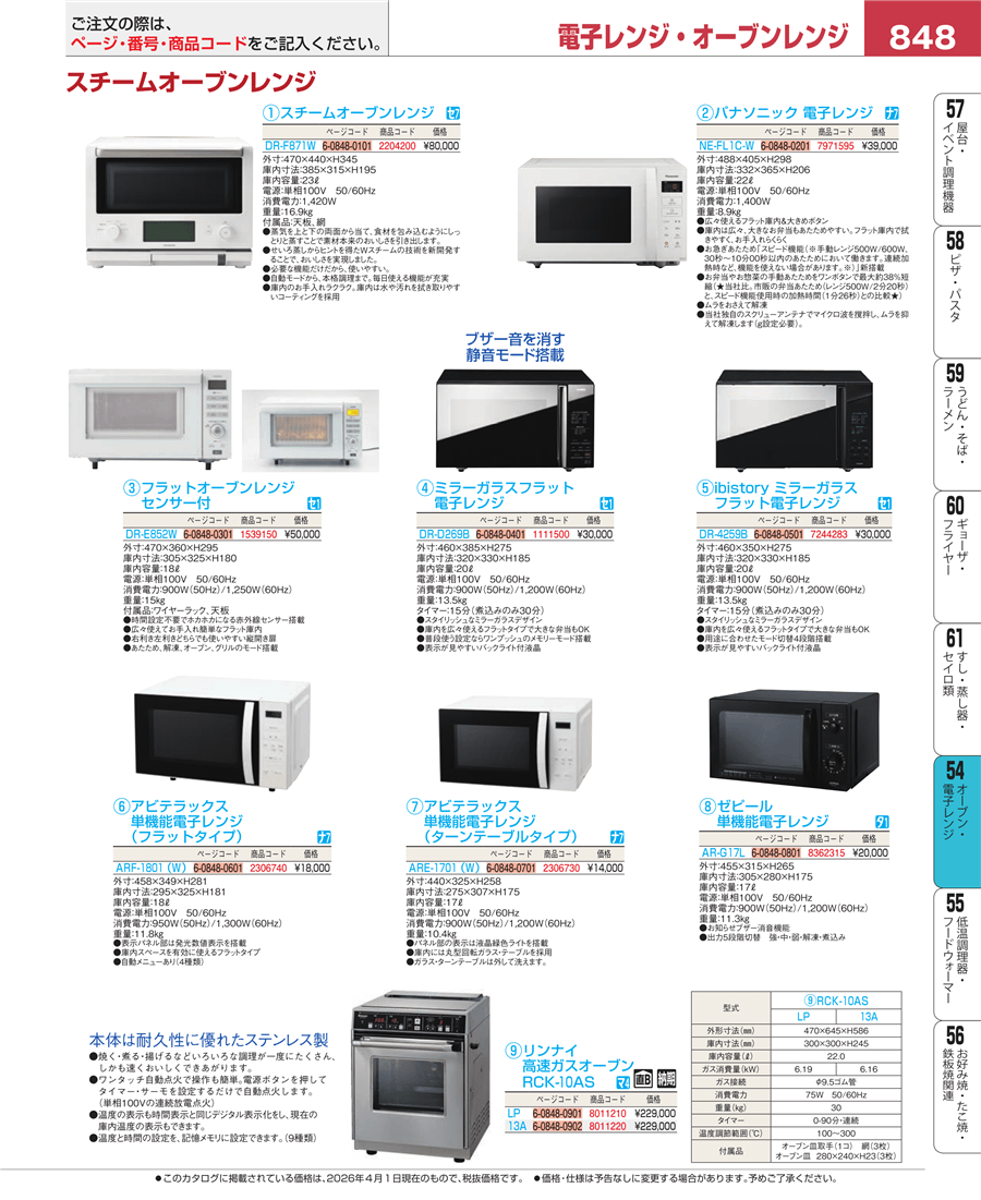 | e26-1539150 | フラットオーブンレンジ センサー付 DR-E852W | 上代 50,000円(税抜) 見積 | ||