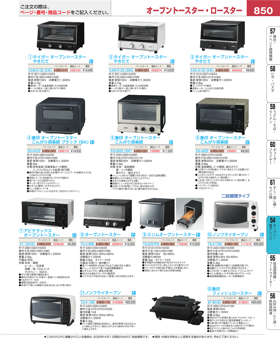 | e26-4350154 | タイガー オーブントースター やきたて KAM-S132(KM) | 上代 14,400円(税抜) 見積 | ||