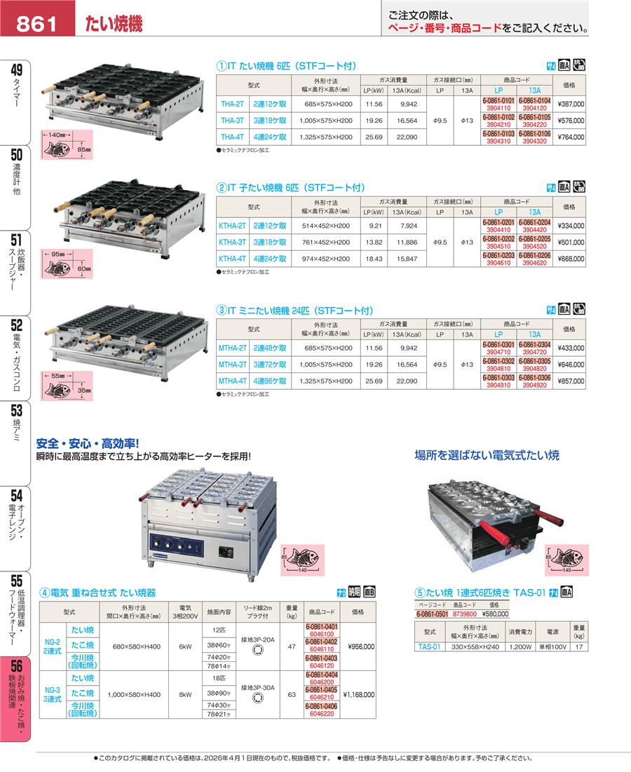 | e26-3904510 | IT 子たい焼機 6匹(STFコート)KTHA-3T LP | 上代 501,000円(税抜) 見積 | ||