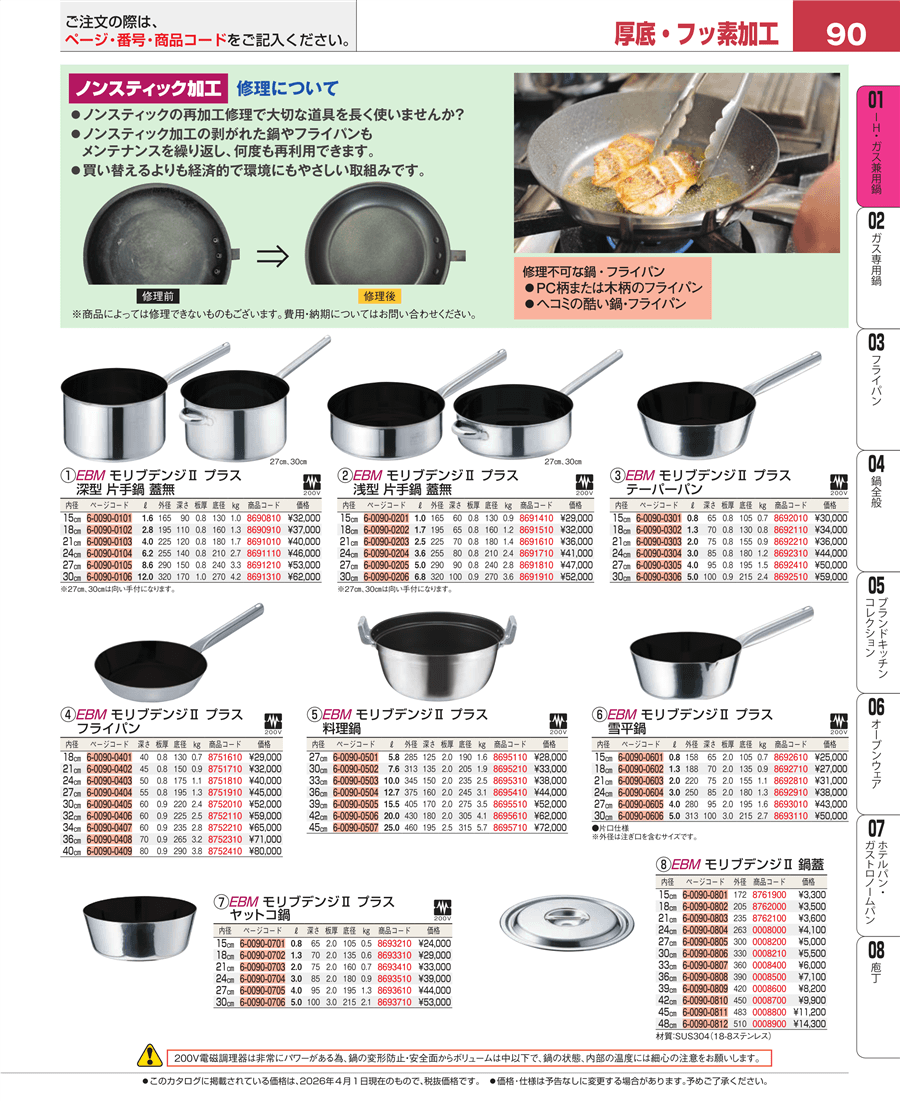 | e26-8691510 | EBM モリブデンジⅡプラス 浅型片手鍋 18㎝ 蓋無ノンスティック | 上代 32,000円(税抜) 見積