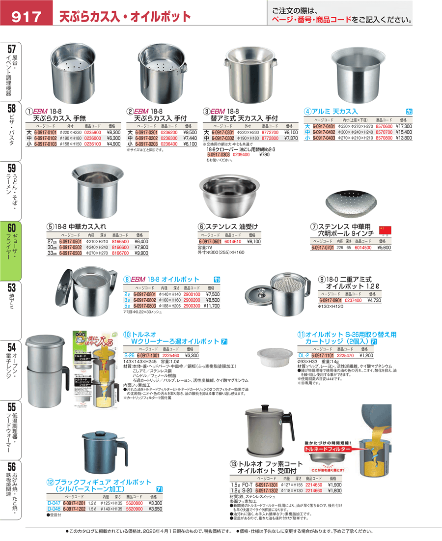 | e26-8772700 | EBM 18-8 替アミ式 天カス入 手付 大 | 上代 9,100円(税抜) 見積 | ||