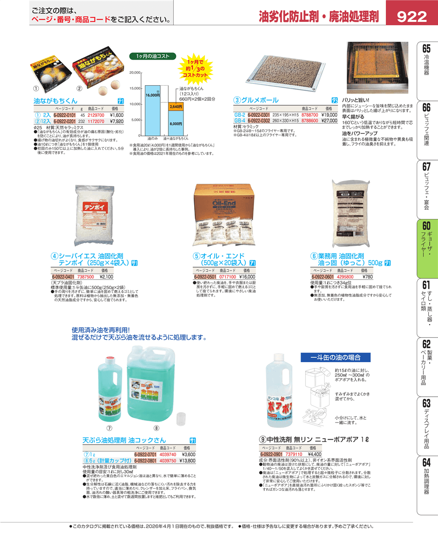| e26-4039740 | 天ぷら油処理剤 油コックさん 1L | 上代 3,600円(税抜) 見積 | ||
