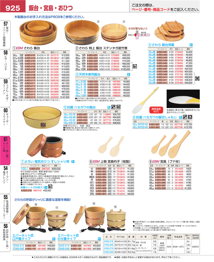 | e26-0512900 | EBM さわら 飯台 30㎝ 3.5合 銅タガ | 上代 11,000円(税抜) 見積 | ||