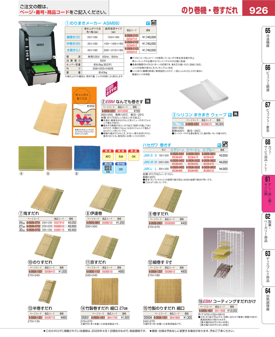 | e26-6310200 | EBM なんでも巻きす 27㎝ | 上代 720円(税抜) 見積 | ||