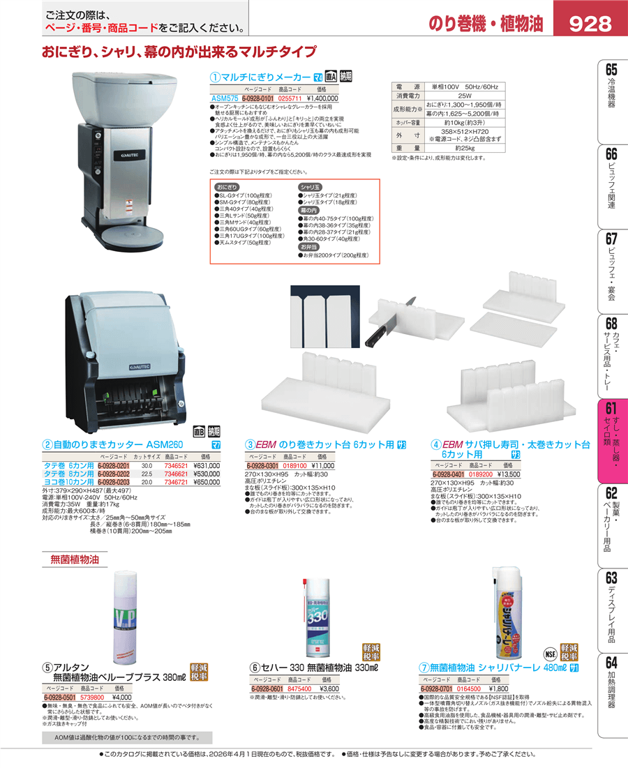e26-7346521自動 のりまきカッター ASM260 タテ巻 6カン用上代 631,000円(税抜)