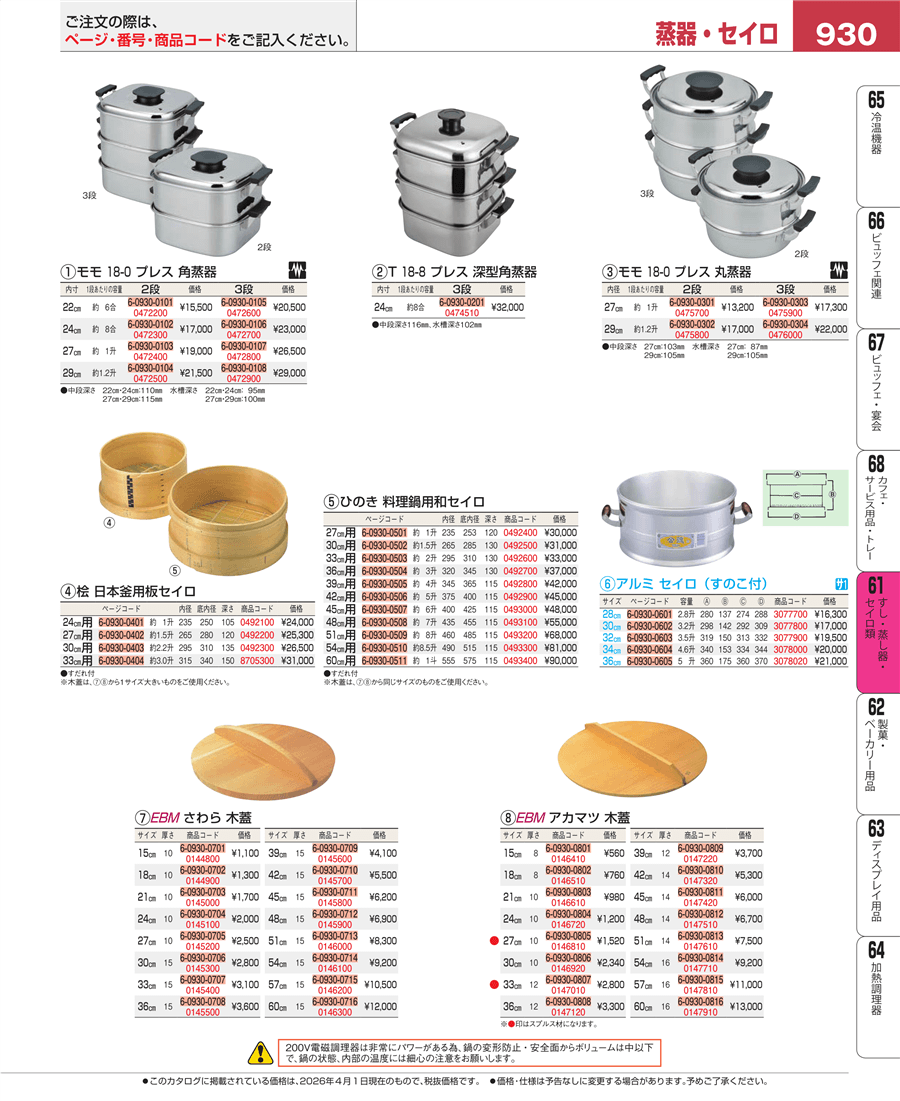 | e26-8705300 | 桧 日本釜用 板セイロ 33㎝用 | 上代 31,000円(税抜) 見積 | ||