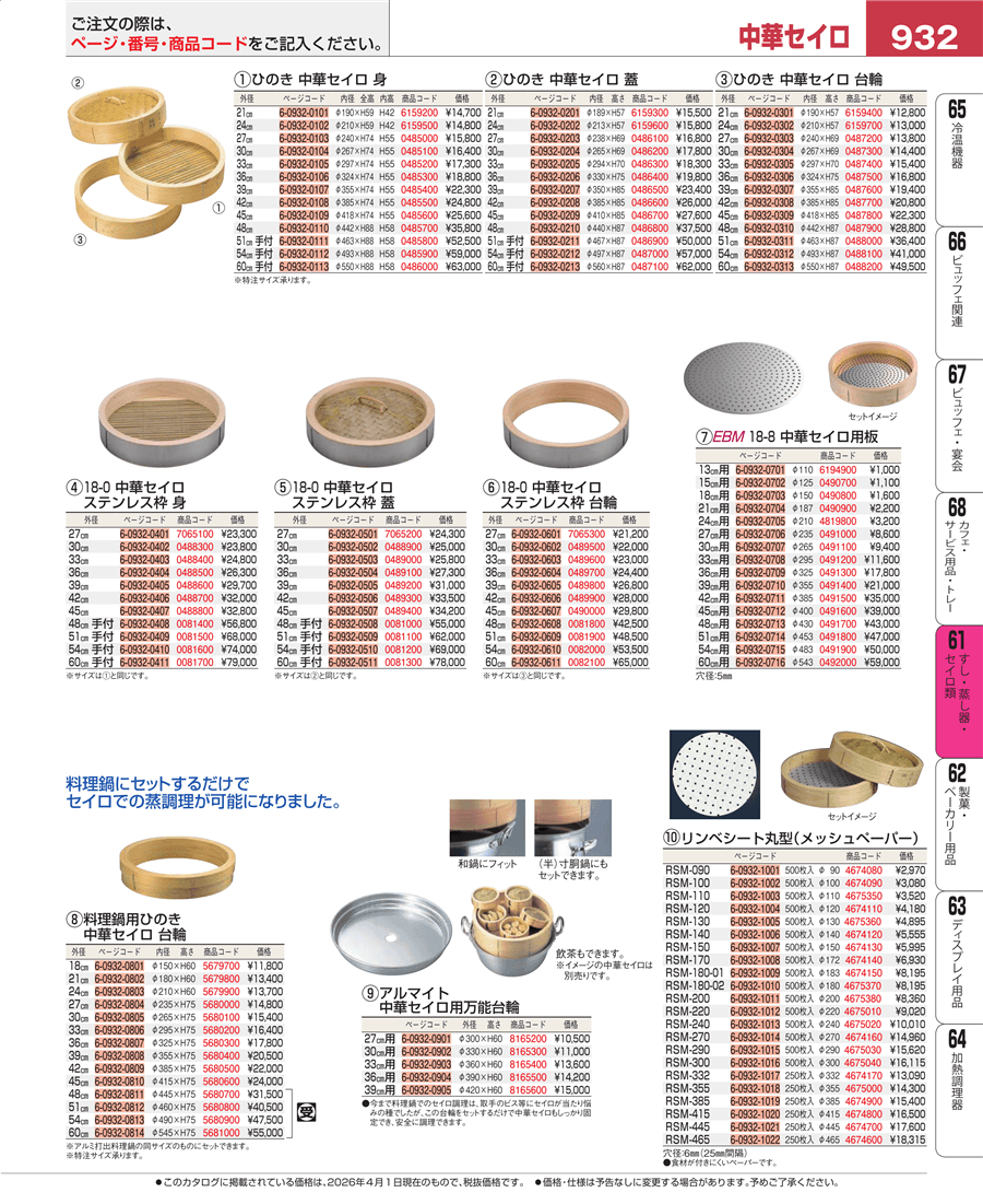 | e26-5681000 | 料理鍋用ひのき中華セイロ 台輪 60㎝ | 上代 55,000円(税抜) 見積 | ||