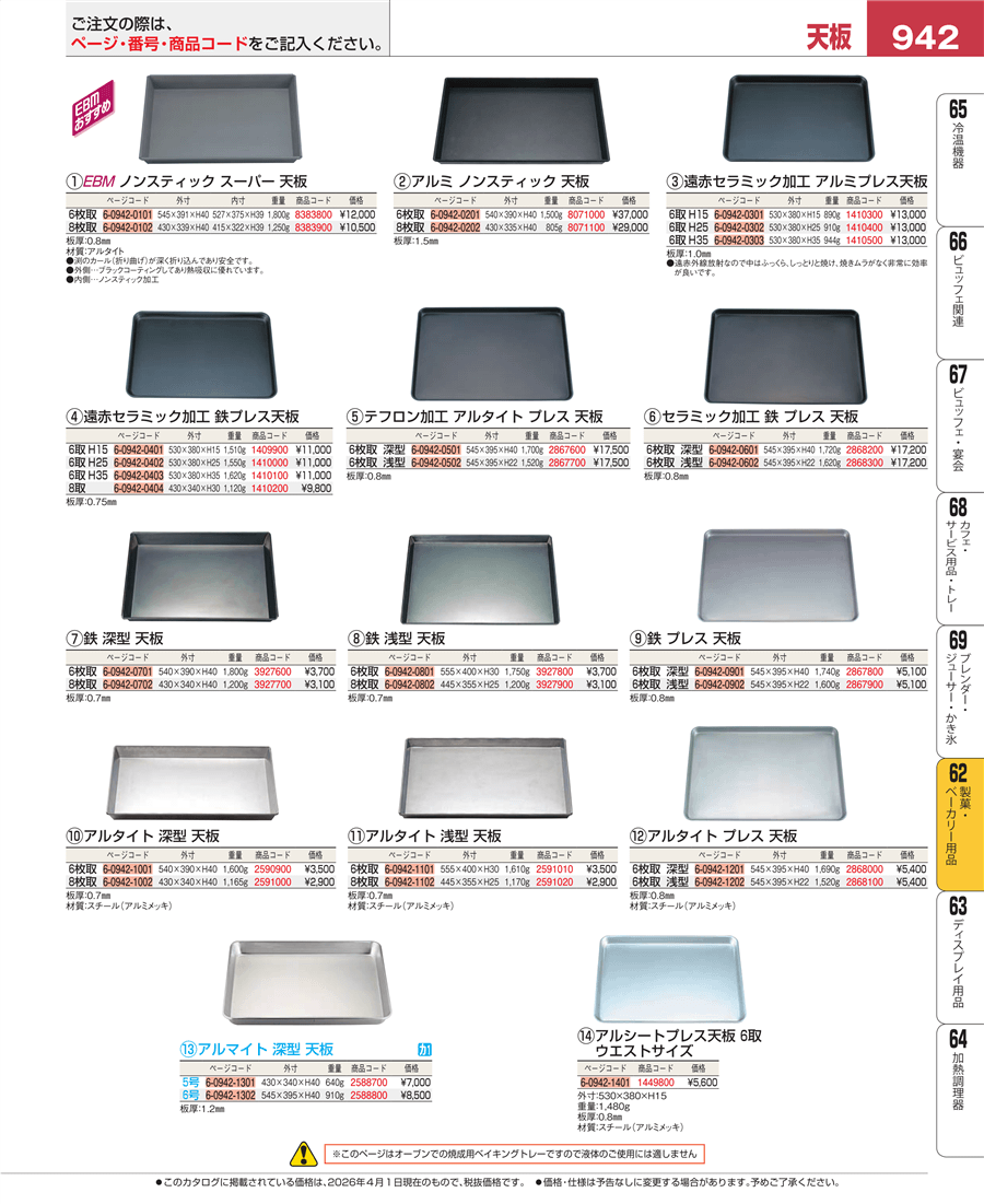 | e26-8383800 | EBM アルタイト ノンスティック スーパー天板 6枚取 | 上代 12,000円(税抜) 見積 | ||