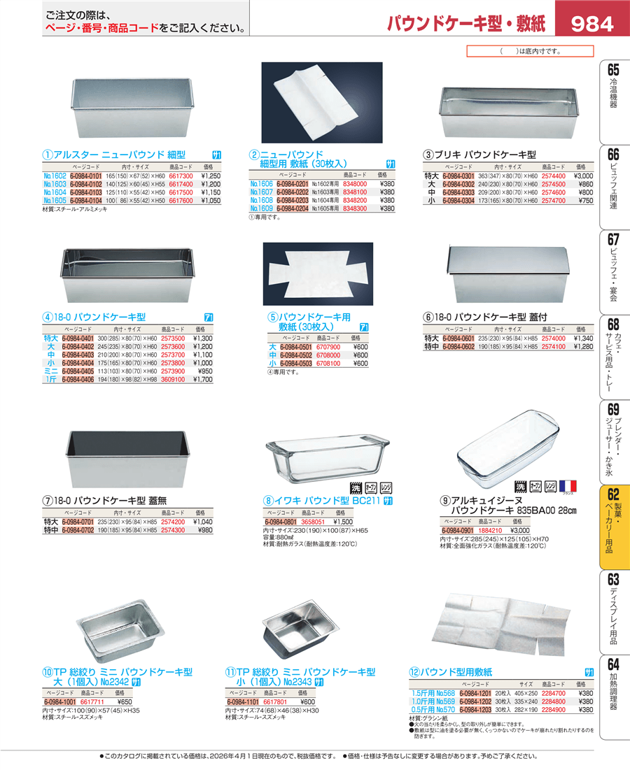 | e26-2284800 | パウンド型用敷紙 №569 1.0斤用(30枚入) | 上代 380円(税抜) 見積 | ||
