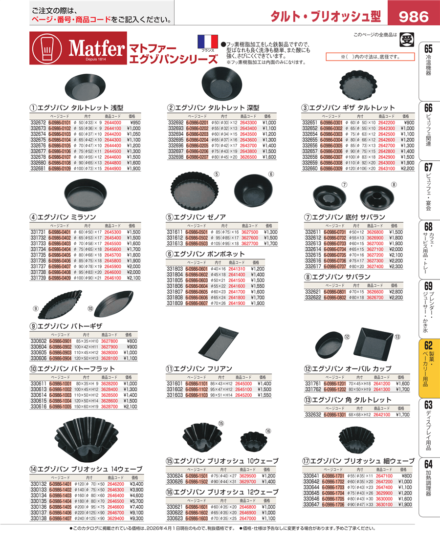 | e26-2643600 | マトファー エグゾパン タルトレット深型 332695 φ65 | 上代 1,300円(税抜) 見積