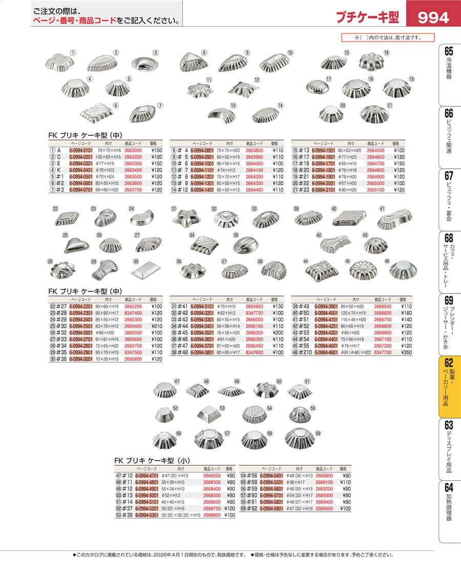 | e26-2669500 | FK ブリキ ケーキ型 小 #62 | 上代 100円(税抜) 見積 | ||